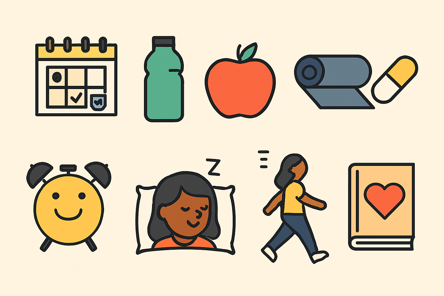 Good sleep is the foundation of good health. Aim for 7–8 hours of quality sleep each night. Go to bed and wake up at the same time daily—even on weekends—to regulate your circadian rhythm. Keep your room dark, cool, and screen-free for deeper rest and better recovery.