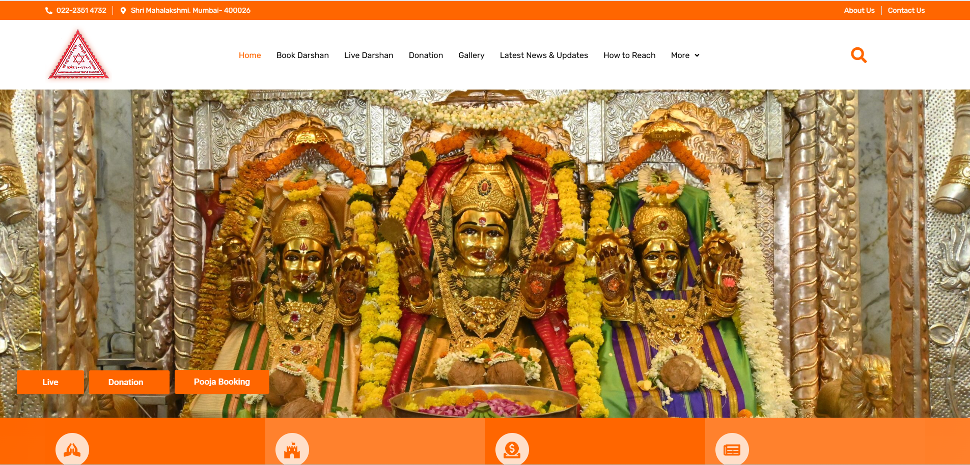 Their official website (mahalakshmi-temple.com) features sections like Live Darshan, Pooja Booking, Donations, Gallery, and Trust / About pages. mahalakshmi-temple.com